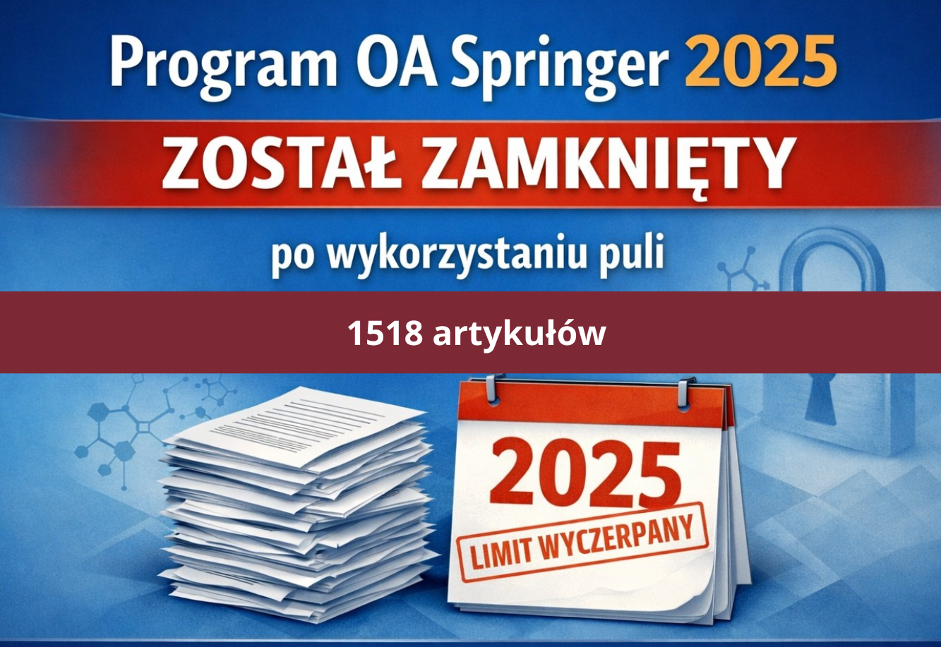Informujemy, że Program publikowania otwartego Springer w ramach licencji krajowej został zamknięty w dniu 30.12.2025 po wykorzystaniu puli 1518 artykułów na 2025 r. Program zostanie wznowiony w 2026 r. po przyznaniu przez MNiSW dofinansowania na 2026 r.